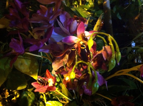 I only went to ones I have not yet visited, with the exception of the Albertina; I was hoping to find a painting by Klee that I first saw a few years ago. I remember it as a small watercolor of a cow on a mountain, but it was unfortunately no longer on display. I was kind of done by that point; it was late, I had spent several hours criss-crossing town on foot, in trams, and on the U-Bahn, and despite pleasantly cool weather outside, the inside of everywhere was uncomfortably warm. I felt like a fresh oil painting. But I’m also an expert at overextending myself, so I decided at the last moment to visit the Butterfly House. It’s virtually next door to the Albertina, and since it was almost 01:00, I figured they would kick everyone out pretty soon anyways, and I really just wanted a quick look at the interior. Not only was it the sultriest of interiors of the entire evening, it was also not exactly as advertised. Due to it being either the wrong time of day or year, most likely both, there weren’t a whole lot of butterflies fluttering about. There were loads and loads of cockroaches. Everywhere. And not behind glass. Right out there with everything else. At least they weren’t scuttling about. I have a completely irrational fear of scuttling cockroaches. Also finding them in unexpected places. I once pulled open a silverware drawer only to find a cockroach lolling around in a spoon. I slammed the drawer and approximately one nano-second later was standing in the living room. By the time I reassembled my spine enough to open the drawer again, it was gone. I know they can’t hurt me, but I freak out all the same. I don’t know why. Maybe it’s their dazzling speed, their uncanny ability to disappear in the blink of an eye through an electrical socket without frying themselves, their affinity for hanging around toilets, where one’s guard and other things may be down, or the common knowledge that there’s never just one. But I can kind of handle them if they are sitting still, and the Butterfly House roaches were doing just that, but essentially on every possible surface, including the vines drooping into the pathways, and the walls that were oh-so-easily brush-up-against-able. I made sure to shake out my jacket and double check the cuffs on my jeans before going home. Perhaps being in such close proximity to so many roaches, without the comfort of a glass barrier, allowed me to make one tiny baby centipede step towards overcoming my hair-trigger turn-and-run reflex towards them. At least I hope so. I found it amusing that one can rent this venue for, say, a wedding. The idea of brides, bridesmaids, and roaches, all together on a special day…endless entertainment. There’s a cutesy note on their website about the butterflies acting as witnesses, but curiously no mention of any other insects doing the same.