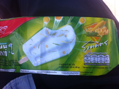 Also available in ice cream bar form. Corn, jackfruit, and something green.