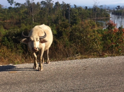 On the last day I turned off the main road into a small, tidy town just north of Nakai, and rode up and down the dirt streets to take a look. Lots of people, both kids and adults, were calling out sabai di, hello. After a few encounters I started stopping and asking if I could take their pictures. Everyone was perfectly happy and willing to pose, although most of the adults put on their serious faces for the camera, no matter how much they were smiling before and after. I always showed the photos I took, and wish I could have gotten photos of the reactions. Anyway, all those people pics are locked in my camera, so here are some taken with my phone on the rest of the ride.