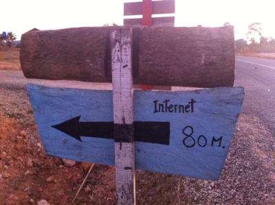 I’m much more confident riding on dirt at this point. Most of this route is paved, but I hit a dirt stretch of, at the time, unknown distance a couple of hours before sunset on the second day, and decided that slower, cautious driving might only leave me en route in the oncoming dusk, which I didn’t want. I started following another rider who has a reasonably faster, steady clip, and realized that it was a family of three and their groceries. I could see bags hanging off the handlebars, and the leg of a toddler peeking out. It made me re-evaluate the situation. They were making better time than I was with triple the load. It’s good to have your boundaries pushed around once in a while. Maybe my next scooter hurdle will be learning how to carry a passenger sitting sidesaddle. Loads of women do it here (it’s always women who sit this way, probably because their skirts prevent them from straddling the saddle), and make it look effortless, even while bumping over dirt. There’s even the occasional double-sidesaddle: two passengers behind the driver, one with legs to the right, the other with legs to the left. I passed three schoolgirls in Cambodia riding this way. Or actually, they passed me. On a bumpy dirt road.