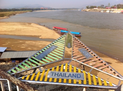 The Sop Ruak Golden Triangle: an example of tourism gone wrong. It’s both a geographically and historically interesting place. In the immediate obvious sense, it’s where Thailand, Myanmar, and Laos meet, facing each other across the Mekong and Ruak Rivers. And it’s the region where most of the world’s opium poppies used to be grown, and where vast quantities of opium and heroin were trafficked. Keeping tradition alive, it’s still dedicated to separating fools from their money, as one square acre of tourist tack. There are booths full of stuff no one needs (except the coffee stalls), a gigantic golden Buddha, and other various repositories for donations. To clarify, I don’t think that Buddhists donating money to make merit qualifies as the aforementioned fools and money, but I wonder, why does it have to be Right There. There’s a wat pretty much right across the street that can serve the same purpose. It would have been nice if the area had been left undeveloped, the better to appreciate borders and history, instead of polluting the landscape with unrelated and irrelevant razzmatazz. Or, if something trashy must needs be built, an enormous gilded opium pipe would have been more appropriate. Visitors feeling the need to throw away money could make a game of pitching coins into the bowl.