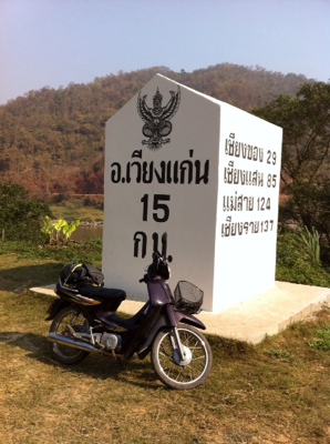 After Phu Chi Fa I rode back to Chiang Rai, taking the long way down route 1093 to Chiang Kham, and then cutting through farmland back to the main road north. Motorbiking around Southeast Asia has only reaffirmed my appreciation for small, occasionally rattletrap motorbikes. Tiny wheels can take you far. Sometimes they don’t go fast, but that’s not the point. Since arriving in Thailand, I’ve seen more full-size motorcycles than elsewhere, but they are still few compared to the number of 100 to 125 cc motorbikes. It’s also been a good experiment in learning now much I can do without. Every multi-day motorbike tour I’ve made has involved leaving my big backpack stashed somewhere in town, taking only a 26 liter day backpack and a shoulder satchel. It’s very liberating traveling with almost nothing. I’m baffled by legions of backpackers here who are hauling enormous, 60 liter plus backpacks that are straining at the seams. Perhaps more perplexing is the fact that lots of these backpackers are the ones who are wearing short shorts, tank tops, and flimsy flip flops. What are they carrying that’s taking up so much room? Even at home, I prefer being light on my feet. I stopped purchasing possessions a few years ago, for the most part, gradually adopting an increasingly minimalist and simple lifestyle; I very much want to avoid a state where my possessions are owning me, rather than the other way around. It’s one factor that allowed me to be roaming around Thailand right now, instead of sitting in an office in California. But maybe that’s another post, for another day.