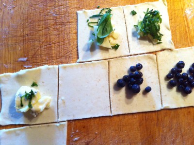 A simple topfen recipe that I like is a dough called Topfenblätterteig. Mix equal weights of topfen, butter, and flour, and let it chill in the fridge for a bit. Roll it out, folding it over on itself a few times. If you do it right, the baked dough will have layers, or leaves (Blätter). Cut dough to any size you want, fill it with anything you want (jam, chocolate, fruits, nuts, cheese), glaze it with an egg to make it more beautiful, and bake it until golden brown, say at 180° C for around 15 minutes. It’s a recipe that allows for infinite variation and creativity, and there isn’t a whole lot than can go wrong.
